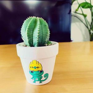 やっと植え替えました🦎 赤い横筋が、出てきて頭頂部に蕾のような粒々発見❣️🤩 たくさんの子株は、寄せ植えに、、、 1番小さな末っ子ちゃんは、お母さんと一緒です👶 鉢のカメレオン🦎にヘルメット⛑いるかな🤣💦
