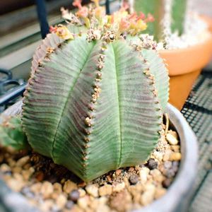 寒くなって出窓組の仲間入りをしているカメレオンヘルメットですが、よく見たら花芽が出てきてるみたいです。