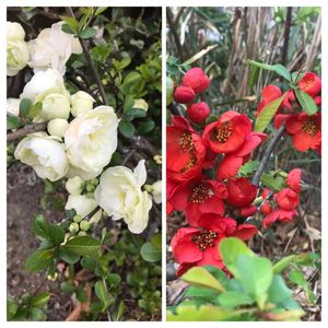 紅白の木瓜(ボケ) 白いのは久々に見たかしら? どう考えても名前がね〜😟