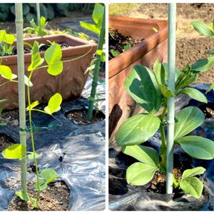 空豆とスナップエンドウの苗も植えました 春に植えるより冬を越してからの方が害虫にも強く良く育つようです