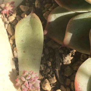名無しのおばけのような大きさの多肉さんをチョンパして、とった葉っぱからむきゅむきゅっとおちびさんがお出まし☆ 小さい頃の姿はどんなんだったのかなー。楽しみ!