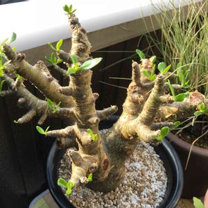 チレコドン・ストリアータス 株元からどんどん生えてきてやっと塊根っぽくなったー このまま横に広げたいな🎵