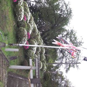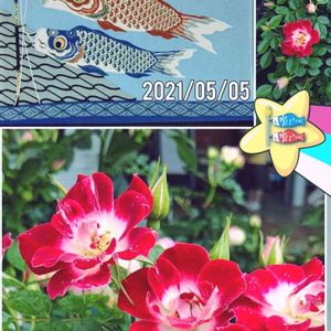 水曜ローズショーに参加します。 2枚目の投稿です。 子供の日なので我が家に飾ってあるタペストリーも一緒にコラボしました🎏