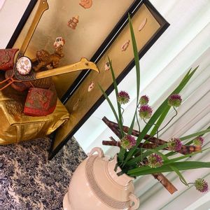兜飾り生け込み 同じ花材で生けても 場所や背景などの空間や花器の質感や色味で違った表情になる気がします。