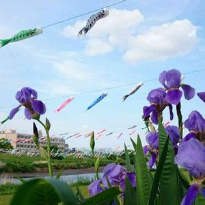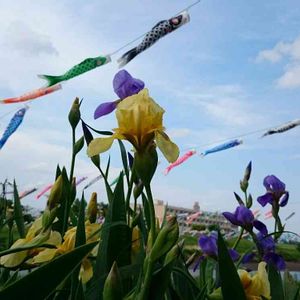 一日早いですが、今年も行って来ました😆 こどもの日らしく、菖蒲と、青空に泳ぐ鯉のぼり🎏