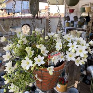 クレマチス カートマニージョー❤️ 宮崎園芸さんで飾られていた大株ハンギングの可愛さに魅了されて、 蕾が鈴生りの一鉢を買って帰り、ハンギングにして1週間🍀 だいぶ白いお花が咲いてきました❗🌸 たまらなく可愛い😆💕