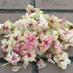 散り始めた御衣黄桜🌸 木の下に落ちたお花を集めて📱