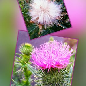 ~アザミ&綿毛~です💠 💠花盛りで咲いています💗 綿毛☁️モフモフ可愛らしい💞