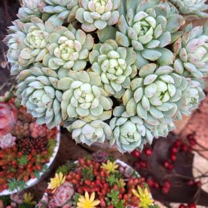 おはよう☁️ 大きめの鉢にチマチマ寄せ 葉挿しから増えたかわいい子たちです。
