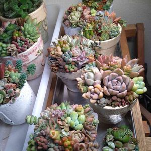 可愛い鉢が届いたので、大好きな姫秋麗を多めに、ちまたま寄せ🥰🥰 土に赤玉を混ぜてみたのですか、数日後に見ると、 やっぱり水分が多くなってしまい下が腐った子がいくつか、、、 やっぱり赤玉は辞めます〜