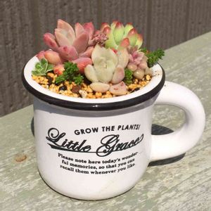 ♡かおりん さん♡ から いただいたリメ鉢で寄せ植え ⸜( ´ ꒳ ` )⸝