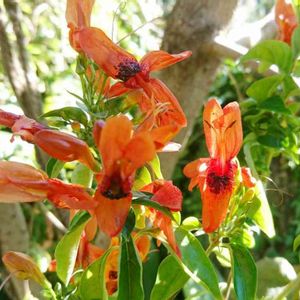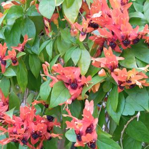 温室の中に有りました(*☻-☻*) キツネノマゴ科のお花が咲いて綺麗💫 変わった形でハロウィン🎃カラー⁉️ 「平成の思い出」に参加します🙋♀️