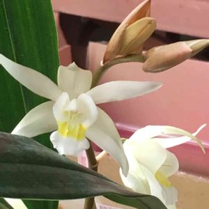 こんにちは😃 ま、ま、ま、まさかのセロジネとの出会い‼️ 値段が値段なので株は小さい(バルブの数が少ない)ですが、もしかしたら花芽が2つ❓ 咲いていないのを購入しました💖 かなりの強香です✨ 以前いた子(故愛犬に逝かされました)は、セロジネしか分からなかったのですが、インターメディアでは無かった様な🤔❓