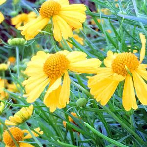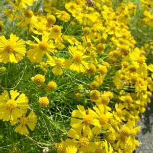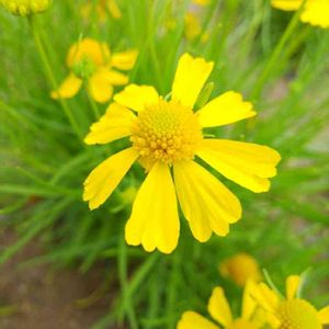 〜6月に見た花〜 🌼マツバハルシャギク キク科ヘレニウム属 別名マツバダンゴギク アメリカ原産の園芸品種で 葉が松葉のように細いので名がつきました。 植えられていたのはダコタゴールド🤔 人気品種のようでした🤗 ✳︎6/3日 浜松市の公園にて