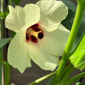 オクラ💕 まだ咲いて実もついてます😊 ご苦労様、ありがとう😊