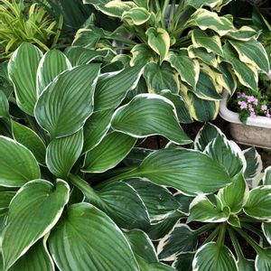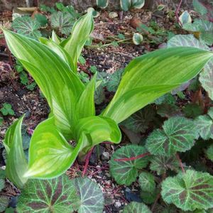 今年お迎えしたホスタ(ギボウシ)達です これから大きくなってくれるのが楽しみです💕 右下のこはミヤコワスレに埋もれてしまいいじけて 阿修羅男爵のようになっていました。