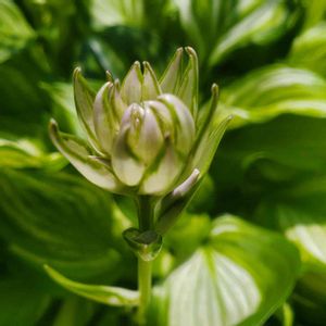 🌺花散歩で🚶🏼♂️🚶🏼♀️見つけた めちゃ可愛い花 斑入りの💜ギボウシ(ホスタ)の蕾 淡い紫の 涼し気な姿💟🌱 我が家では花芽もついてないけど〜🤣 🏷️ 金曜日の蕾たち に参加しますネ