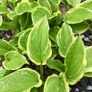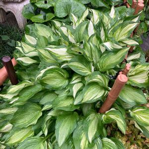 春雨の一日☔️ 「斑入りギボウシ」の姿が美しく、心が 静まります🌿