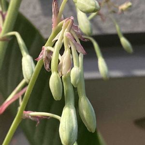 《ベスコルネリア・アルビフローラ》 デンパークコレクションの花です🤭 メキシコ原産、キジカクシ科の多肉植物です🌼 本種はべスコルネリア属の中でも小型のタイプで、花は濃桃色の苞の下から長さ4~5cmの淡緑色の筒状の花が吊下がるように着き、咲き進むと濃桃色に変わるので、カラフルになります🌼🌸