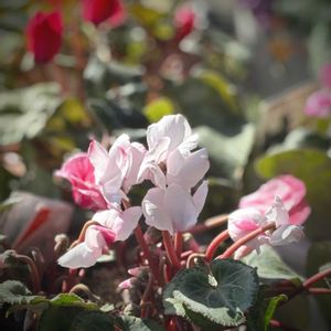 シクラメン❁⃘*.゚ ①夏越ししたミルキーガール✿ᵕ̈* 2月の始めはまだ蕾ばかりだったけどここにきて咲きだしました⸜(*ˊᗜˋ*)⸝ 花茎は短いけど可愛いです(,,> <,,)♡ 今日は日中暖かかったので日向ぼっこさせました☀️𓈒𓏸 ②ジックス お正月にホームセンターで30円になってた子👀✨ つぼみはあるけど葉っぱは枯れ枯れ 周りを見ると元気に咲いてる子もいたから この子は寒さで弱っちゃったのかも…🥶😵💫٭❅ 復活させてあげたい!! と、いつもの救済癖が出た私🤭 ダメ元で連れ帰り 見守りながら世話すること約2ヶ月🗓 咲き始めました〜😆✨ つぼみも出てきてます🍀*゜ これからは暖かくなるし このつぼみ きっと咲いてくれるよね𓂃𖤥𖥧𖥣⋆* 楽しみです*.(*´͈ ˘ `͈*).*