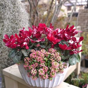 シクラメン ジックス ワインレッド シクラメン苦手民でも育てられるジックス 2株植えです🌱🌱 花持ちが良くて多少の寒さは平気 我が家では寒波のとき以外は外管理です🌱 強い子助かる💯