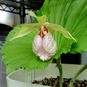 日本熊谷草 ふっくらとした花が開きました。 葉も美しく 不思議な姿です