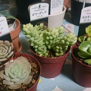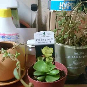 袋から出す 背丈が高い分、持った時に袋の側面に押し付けられてたけども、葉の1つも取れずしっかり立ったままとはなかなか強い子やなビアちゃん ルンヨニーはもっと大きめサイズの株もあったけど、エケベリアは ・下葉は大きく広がり、 ・でも内の葉は締まっている、 ・比較的全体径の小さい のが好きっていう好みがあるからこの子をチョイス モロキニエンシス、さっきpostしてからタグ見たけど、どの家庭の子もすごい立派な佇まいになっててあたしゃこの子の成長姿が楽しみですよ