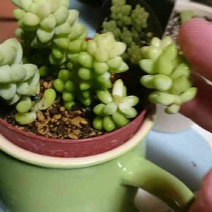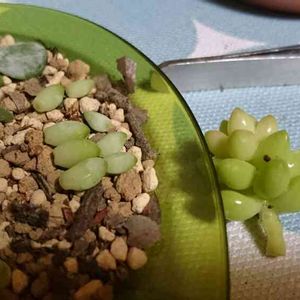 葉挿し皿といえば 前に折れたチョコ兎耳から1本だけ根が伸びてた スマホのカメラじゃ至近距離のピントがゴミってるからまともに撮れやしないのが辛い 自室で接写レンズ発見したからリベンジせねば