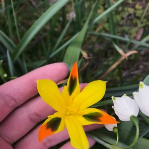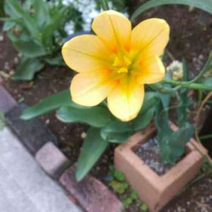 お名前わかんなくて気になっていた花 我が家にもなぜか咲いた(^∇^) いつ植えたのかなぁ 球根ミックス買ったなかに、はいっていたみたい でも… 原種チューリップのミックスだっけどなぁ
