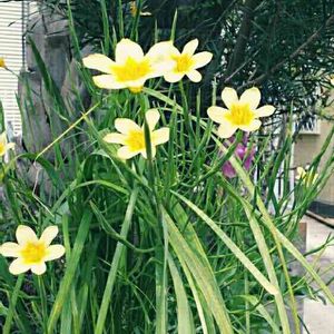 数年前に多分球根を買ったのだと思います。 丁度今咲いていて、開花は1日だけ。 咲き終わると種が大量に出来て、隣の鉢やプランターにどんどんお引越しして大繁殖。球根も当然増えていきます。 葉は細長い。軽く30センチを超えます。 花の名前を忘れてしまい、立札が立てられません。 どなたかご存知ないでしょうか? 近所のガーデニングしてる人達のお庭を見ても、同じ花を見たことがありません。