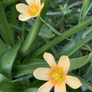 ホメリアの花です。 これも植えて良かったです。シンプルな姿が可愛いです。 開花期がチューリップの後だったので、開花の楽しみが続きました。 種を植えたクリスマスローズかなと思える発芽も見つけられてとてもうれしいです。