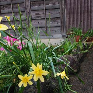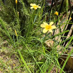 お友達のガーデンに咲いた花です!黄色のホメリア?→夜になると窄んで、朝にまた「おはよー」と開きました!かわいい〜🌼☺️