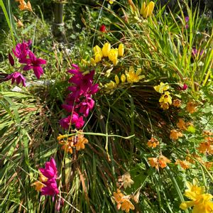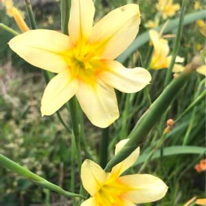 おはようございます☁️ 今日もだいぶ涼しそうです 今朝またストーブをつけました… 今週は 「我が家の庭の花たち𓂃𓂂ꕤ*.゚」 “まこS”さんの 🏷️「月曜日は元気色の花」 に初参加させていただきます❣️ 廣花奈さんの 🏷️「秘密の花園♡」 と 🏷️「花咲く乙女たち♡」 に参加させていただきます😊 その① 「ホメリア-モラエア オクロレウカ💛」 南アフリカ原産で あまり人気がないのか( ˊᵕˋ ;)あまりネットで情報をゲットできませんでした💦 母がどなたかからいただいたようです🎁💛 ほそーい𓂃🌿𓈒𓏸から アヤメ科だというのはうなづけます 花弁に特徴があり 真ん中に線が入って オレンジのラインは ネクターガイドなのかな〰️✨️?と思うのですが 単なる斑紋なのかどうでしょうか? 後ろにも斑紋が透けているのか ついているのか... 1日で花はしぼんでしまうのですが 次から次へと咲くようですꕤ︎︎·͜· ︎︎ オクロレウカ💛は「帯黄白色の、黄色を帯びた」という意味だそうです 英名Cape tulip それではみなさん♪̊̈♪̆̈ 今日もステキな1日をお過ごしください🍀*゜ ⋈♡*。゚⋈💜*。゚⋈♡*。゚⋈🐰*。゚⋈♡*。゚⋈💜*。゚⋈♡*。