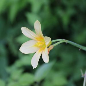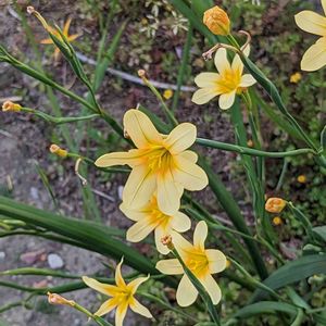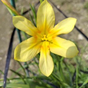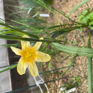黄色い 花の直径は4㎝ 高さ5-60㎝ 葉は細く長さは花の高さの倍ぐらい