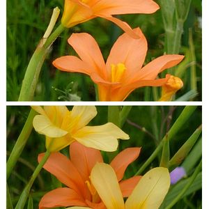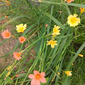 オレンジ色のホメリアです🧡 ガザニアの隙間から スッと立ち上がってます。 紫色がチラッと見えてますが これは又、別の日に🤭💜