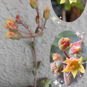 多肉のお花 ピンクプリティさん グラプトベリア属 レディシアさん セデベリア属 どちらも子だくさん👶 お花も綺麗 (ლ˘╰╯˘).。.:*♡