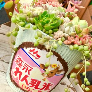 れん乳氷寄せ植え二つ目出来ました 作業時間が開いちゃったせいでカット苗が徒長してしまいました😅