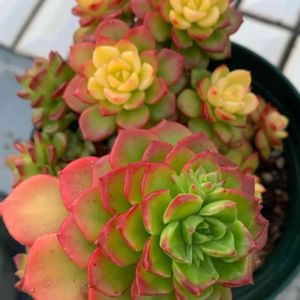 多肉花壇の子たち🎶 かなり巨大化したラウリンゼを仕立て直しました😅 梅雨、真夏の蒸し暑さに負けずガンバってくれてたけど、外葉がかなり黒ずんで見た目が悪かったので外葉を取ってコンパクトにしました♪ ずっと雨晒しだったのかと思うぐらい 中心はキレイさを保ってます😊 ちなみに左上の子は名無しちゃん💦 同じような子がたくさんあるので区別がつかないです😓