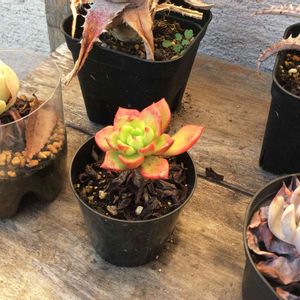 2週間ほど前にダイソーさんからお迎えした子達。 全部一緒に植えちゃいまし レディシアが綺麗になってる🥰