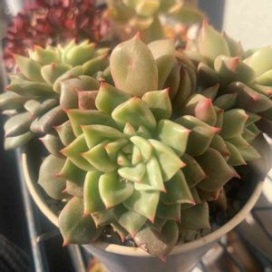 今日はお休みです🎶晴れてます☀️ でも西風強くてさっぶーい😣 多肉ちゃんたち日光浴中 福袋シリーズまだ完結してないけど 今日はこの多肉ちゃんが可愛かったので 載せたいと思います😄 カオンの庭さんの交配苗 ♂ジュピター ♀沙羅姫牡丹 素敵な色に紅葉中です❤️