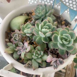 今日から2月 お天気良かったけど風が強くて寒かった😣 2019年お迎えの青い渚 放置多肉の一つですが久しぶりに棚奥から 出してみたら沢山子吹いてました😊 春になったらチョンパ✂️して植え替えてあげようと思います😌