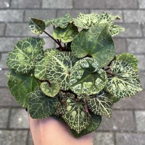 原種シクラメン ペルシカム 園芸種の元になった品種 みどりのブーケ💐 シクラメンの実生もたくさんしています。 実生の魅力はいろんな子が生まれること。 葉模様いろいろで楽しい🌱 今年の初めに蒔いたポットに花芽発見💡 ますます楽しみ😊