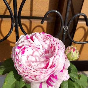 ザフェアリー🌹 鉢に合わせて成長しまくり😂 階段に置いてあると莟を踏みそう💦 昨日、土を買いに行ったら、なんと🎵アイアン全品30%off😍 早速買って置いてみたら~🎵 なかなかいい感じ~💓 これなら踏まずにすむね~(* ´ ▽ ` *)🎵