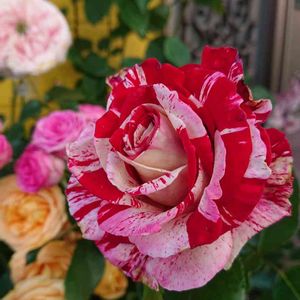 バラの庭に誘ってくれているのはバリエガタディボローニャ💞 今年のボローニャさんはお花が大きめです ♪(๑ᴖ◡ᴖ๑)♪ 連投失礼しました(^人^)