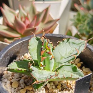 今日のお花 アガベ。 リトルシャーク、ブラック&ブルー eriさんから頂いたリュウゼツランJitaさんから頂いたチタノタ等。