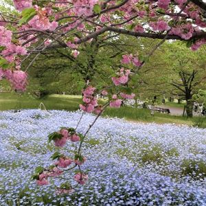 おはようございます🐓 昨日 舎人公園に 行ってきました。 ①②③ 一面のネモフィラがきれい でした🩵🤍💙 ④⑤ 八重桜も満開🌸 散り始めている八重桜も 素敵です♡ 今日はこれから雨の 予報です☔️