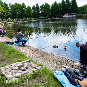 2021年5月23日 東京都足立区 舎人公園 池で釣りをしている人々