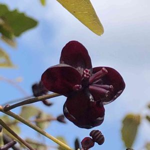 アケビのお花。 叔父のお庭で初めて見ました。 丁寧に作られた民芸品のおもちゃのような… 不思議なお花なんですねぇ♡︎ʾʾ