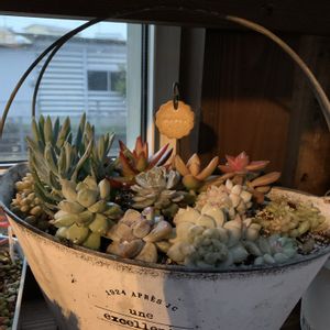 おはようございます🙋 前に頼んでいた多肉の寄せ植え❇️ ①②は姉と私の自分への誕生日祝いに ③は多肉に興味が出てきた娘へ 作ってもらいました ほとんど材料費のみの値段みたいで良い元気な多肉ちゃんです ④並べると全部欲しくなる ⑤またおみやげももらってもうルンルンです⤴️⤴️😊