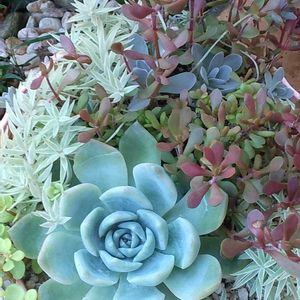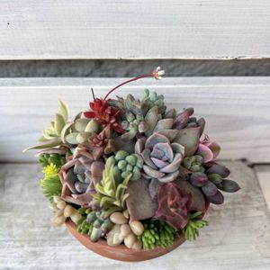 1つ200円の多肉バイキングでお迎えした子達。 名前もわかりませんが、紅葉が綺麗な種類だそうです まだお水はNGだそうで、とりあえず土の上に置いてみました。 お水をあげる頃に、隙間にセダムをいれようかな。 お水をあげる時期は見た目で判断は難しいから今月末からね!とのことでした。 大丈夫かな?私。